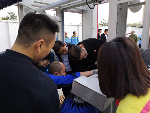 我們的工程師嚴工現場針對客戶提出的設備保養及安全操作問題,做出了專業及詳細的解答,并且現場親自實際演示給客戶看,既生動又形象的讓客戶牢記于心,中間環節客戶更是親自參與進來按照嚴工的操作步驟一一實操了一番加深印象。