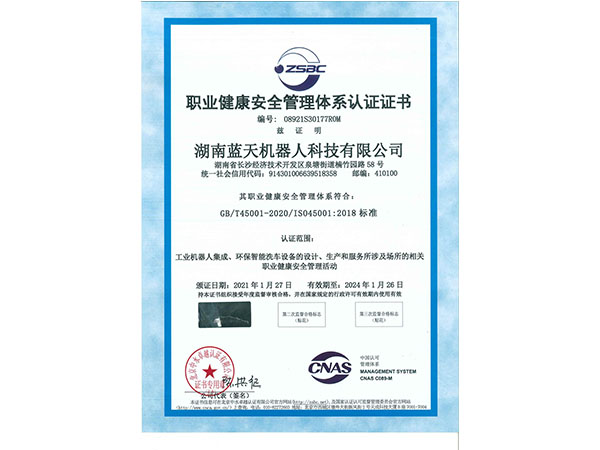 職業健康安全管理體系認證證書